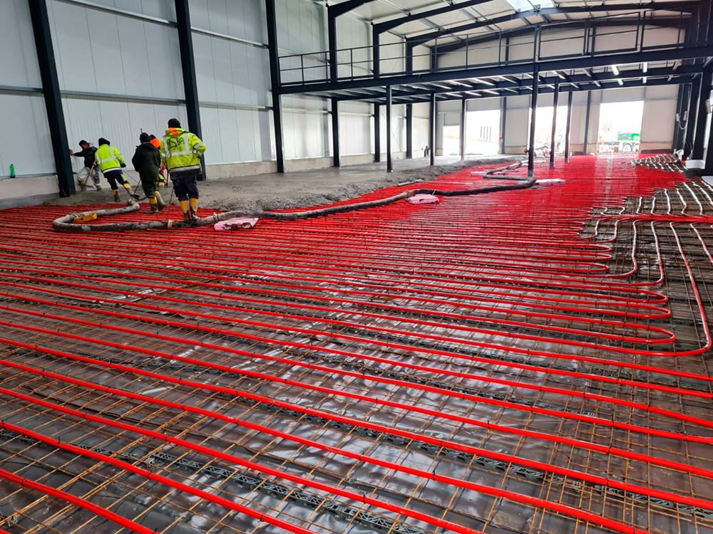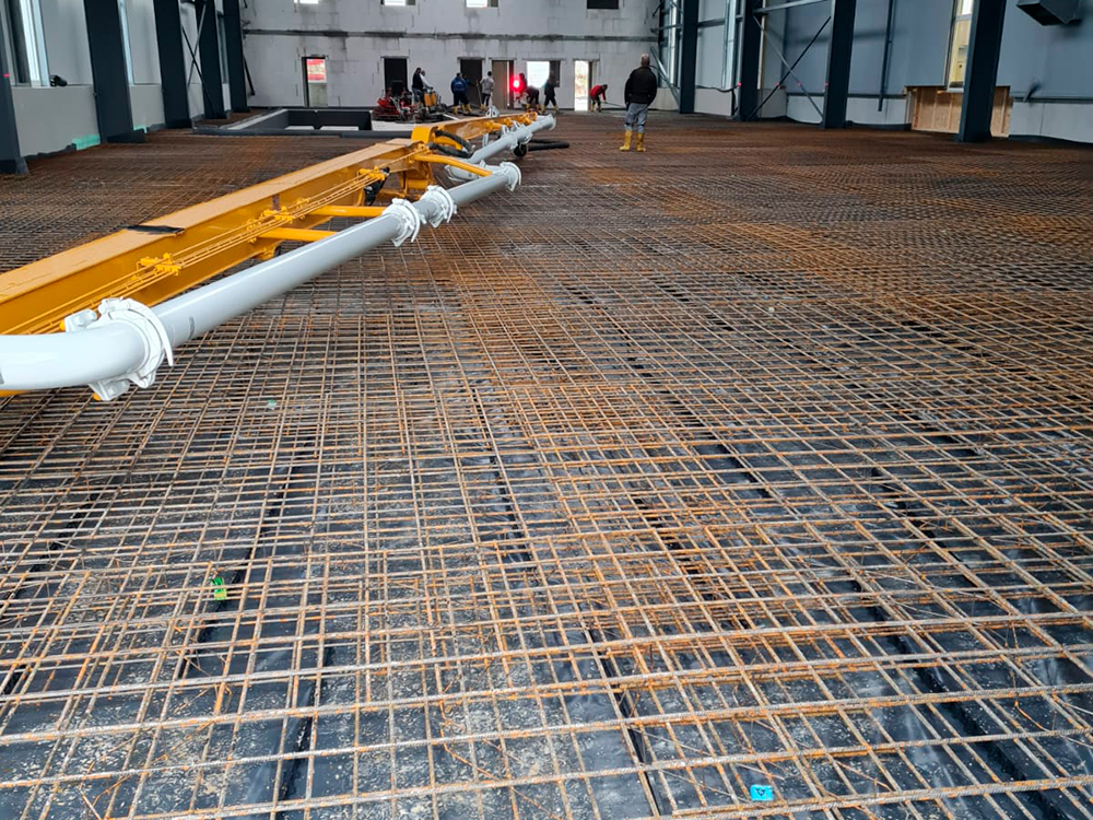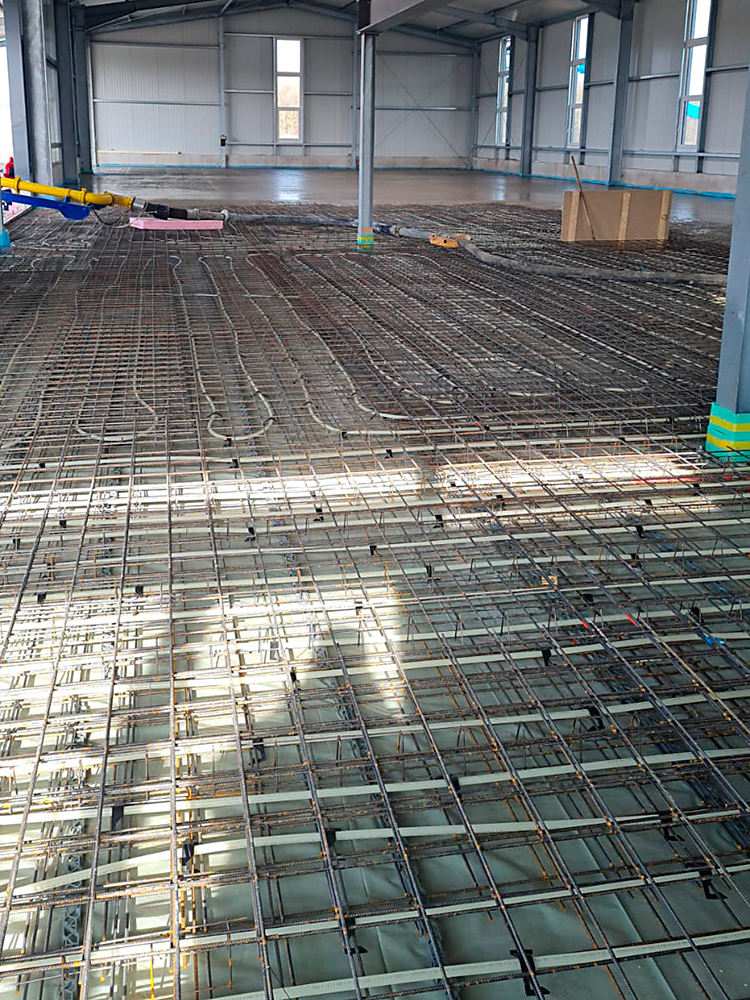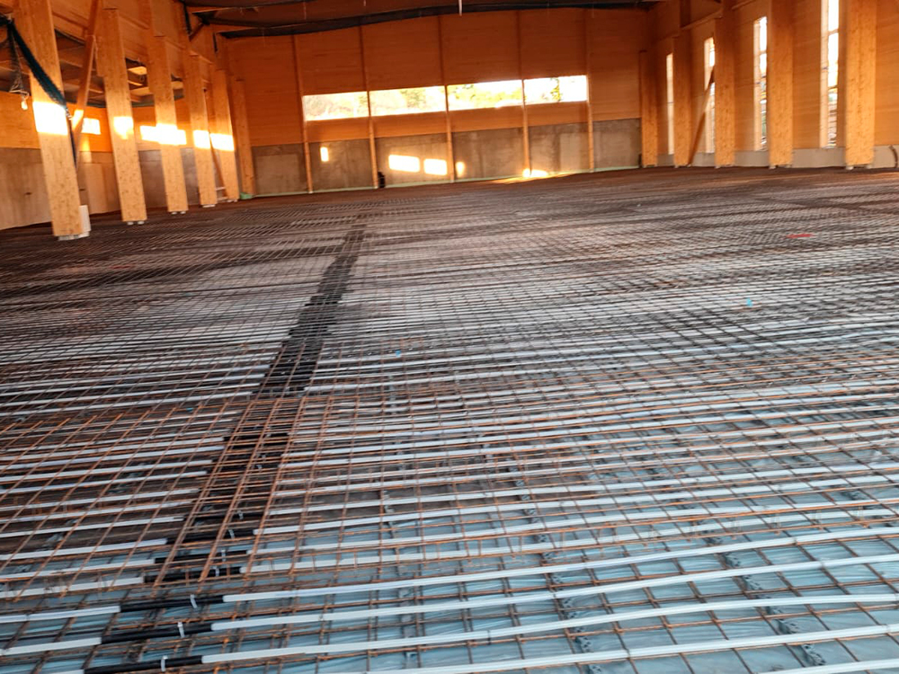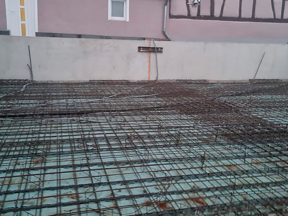 Eurofloor achte schon bei der Veregung con Matten auf die richtige Bewehrung in ihrem Betonboten ust Betonpfeilern.